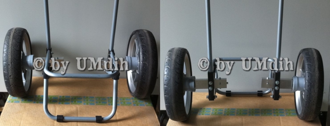 und montiert diese anstatt der original Bereifung an das Assi-Wägelchen.