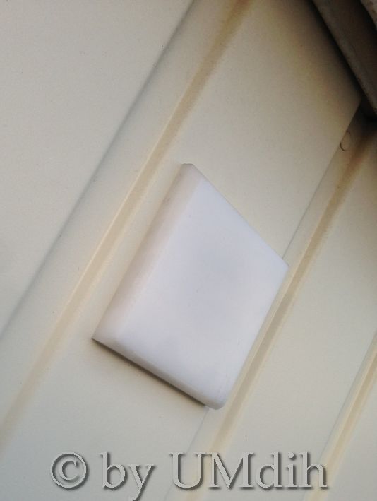 wetterfeste Abdeckung, bestehend aus einer POM Platte und ein paar starken Minimagneten (die Teile stammen